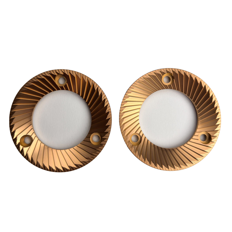 مصنوعة من فولاذ الأدوات عالي الجودة ومطلية بطبقة Red Speed (تيتانيوم-ألومنيوم-كربون-نتريد – TiAICN)، مما يسمح لها بطحن أكثر من 10,000 رطل (حوالي 4500 كجم) من القهوة قبل الحاجة إلى استبدالها.