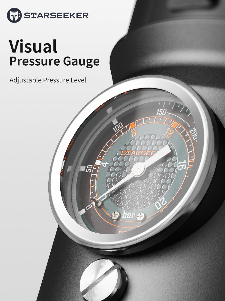4. مقياس ضغط مرئي، ضغط قابل للتعديل، لتلبية متطلبات إنتاج قهوة مختلفة