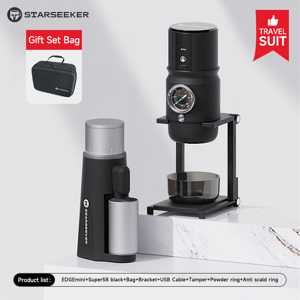 تتضمن هذه المجموعة ماكينة القهوة المحمولة Super58، ومطحنة EDGE MINI، وحافظة تخزين من نوع EVA.