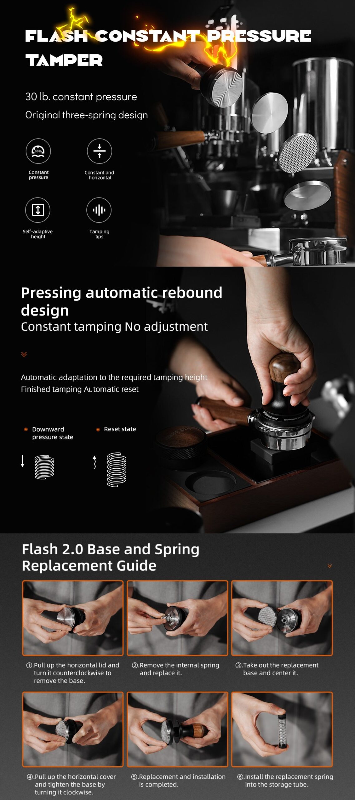 - الجزء السفلي مطلي بالتيتانيوم: الجزء السفلي المصنوع من التيتانيوم أكثر متانة وأفضل في منع الكهرباء الساكنة، ويمكنه أيضًا تقليل كمية المسحوق المتبقية على مدك القهوة بعد كل دك، مما يجعل تنظيفه أسهل.
