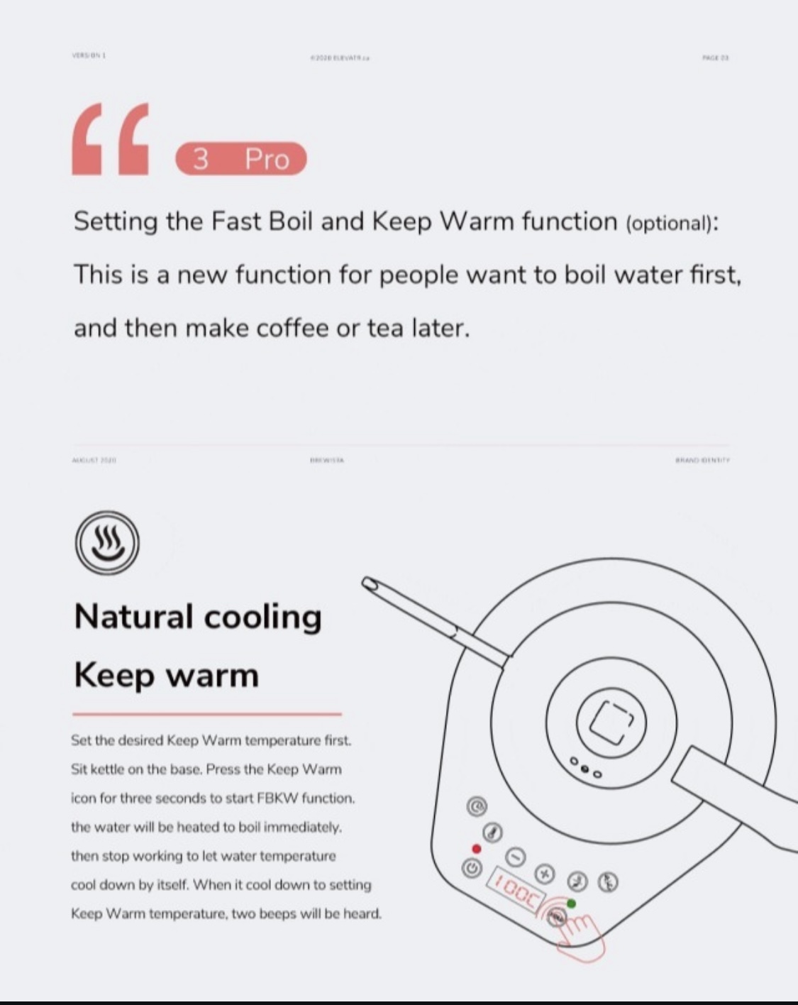 إعداد الغليان السريع بفضل سرعات الغليان التي يمكن حتى لعشاق القهوة الاستمتاع بها، فإن غليان Brewista عالي الطاقة يعني انتظارًا أقل ووقتًا أطول للاستمتاع بفنجان مثالي من القهوة. إعداد الحفاظ على الدفء استمتع بأول كوب من الماء دون الحاجة إلى إعادة تشغيل الجهاز. حافظ على درجة حرارة الماء المطلوبة واحتفظ بها عند هذا المستوى باستخدام إعداد الحفاظ على الدفء.