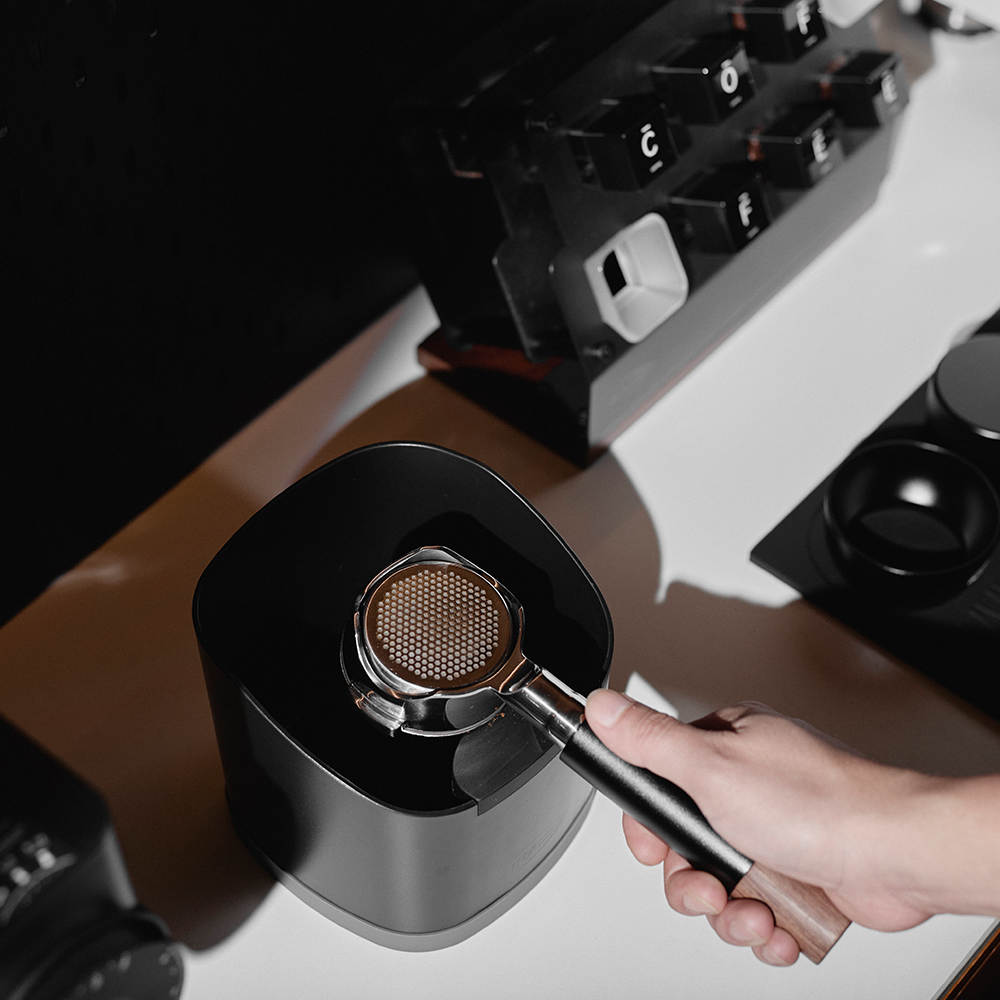 يتميز بمساحة سطح كبيرة، مما يسهل التخلص من أقراص القهوة المستعملة بسرعة وسلاسة. كما يمكن استخدامه أيضًا لتجهيز قرص القهوة قبل الاستخلاص.