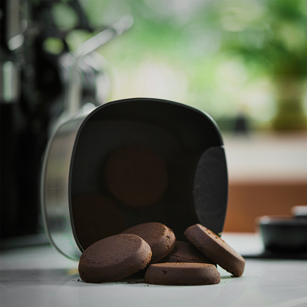 صندوق IKAPE V2 يتمتع بسعة كبيرة تتراوح بين 12 إلى 18 قرص قهوة، وسهل التنظيف — فقط اشطفه بالماء مباشرة.