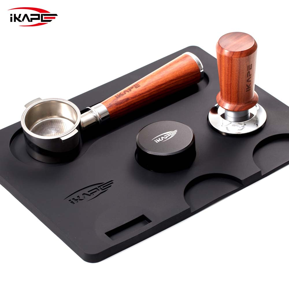 هذه الحصيرة المصنوعة من السيليكون هي الرفيق المثالي لأدوات القهوة من IKAPE، حيث أن لكل منتج مكانه المخصص. لا تقتصر فقط على تخزين البورتافلتر، التامبر، والموزع، بل تتيح لك أيضًا التامب وضغط البن داخل الفتحة المخصصة لذلك.